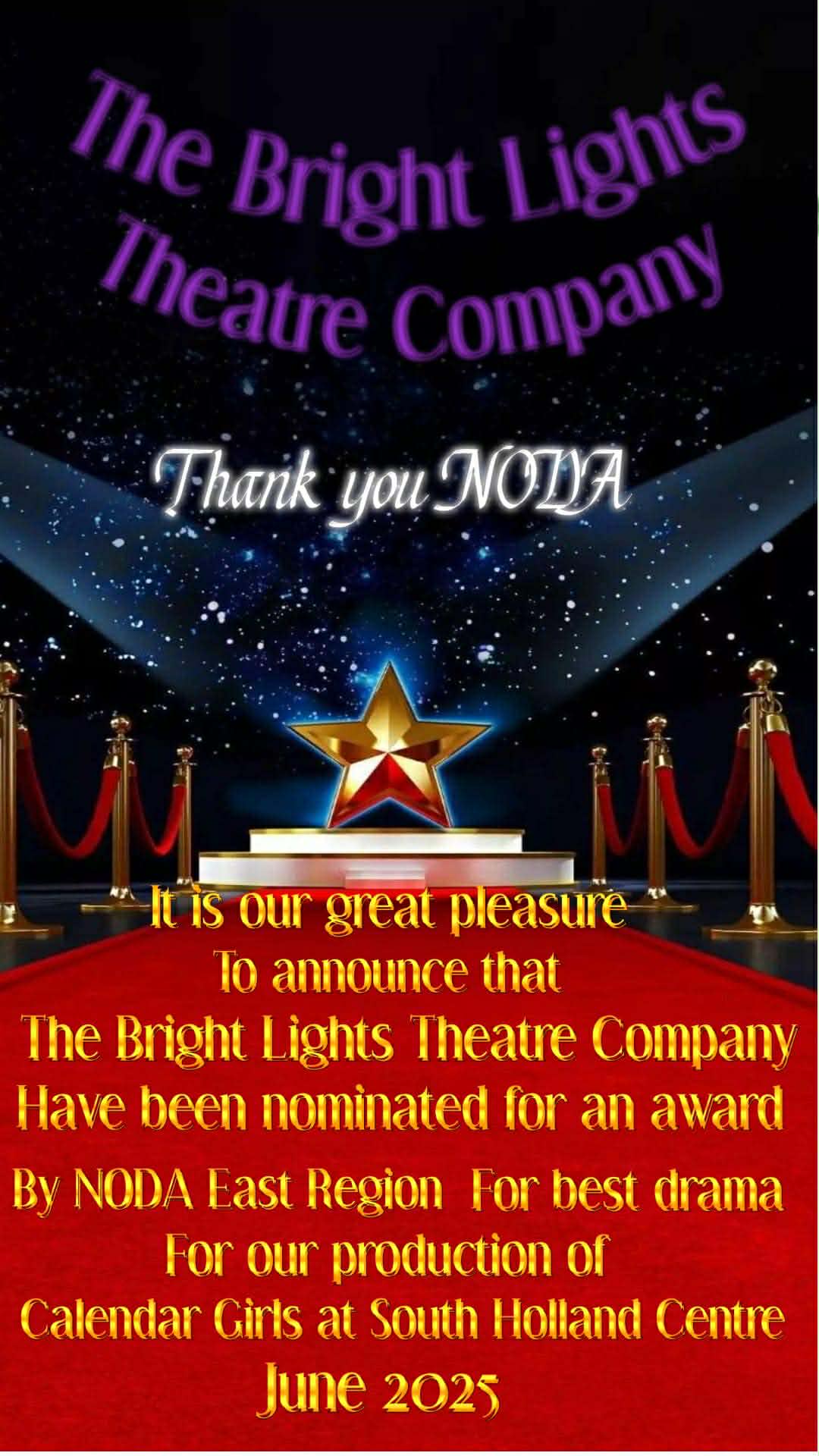 Bright Lights have been nominated for an award by NODA East